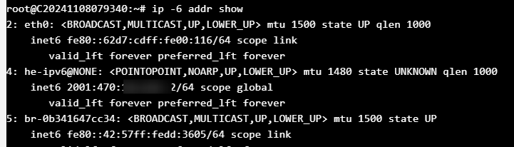 开通的vps没有ipv6通道,如果需要一些特定用途。可以使用 https://tunnelbroker.net/隧道。