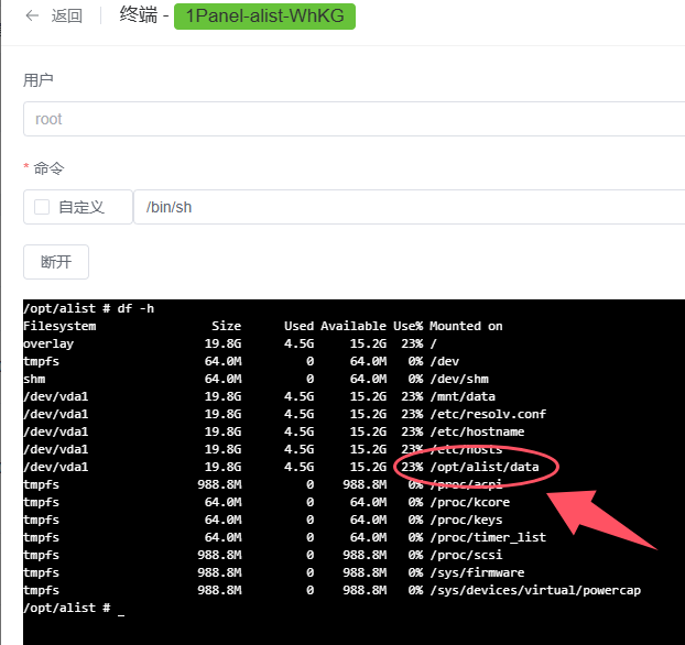 2.登录alist, web界面设置对应的 这个挂载。我用的 1panel真实路径 /opt/1panel/apps/alist/alist/data/data/