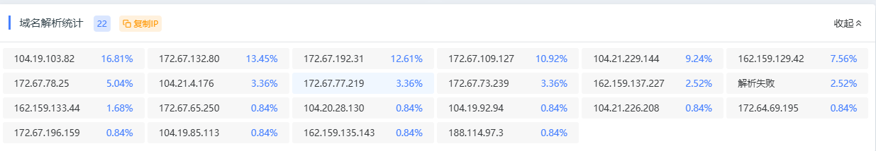 域名通过cloudflare加速cdn的默认是分配两个固定的ip。 比如这两个。